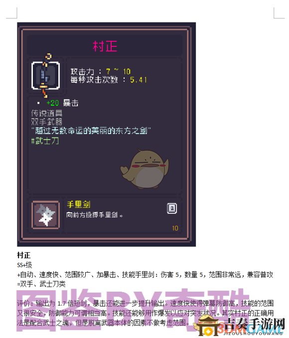 《Dungreed》村正性能解析报告