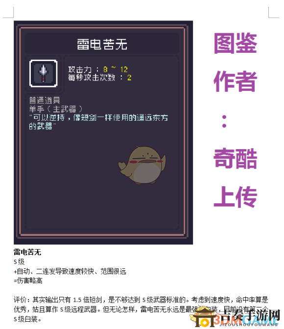 《Dungreed》深度解析:雷电苦无性能测评揭秘