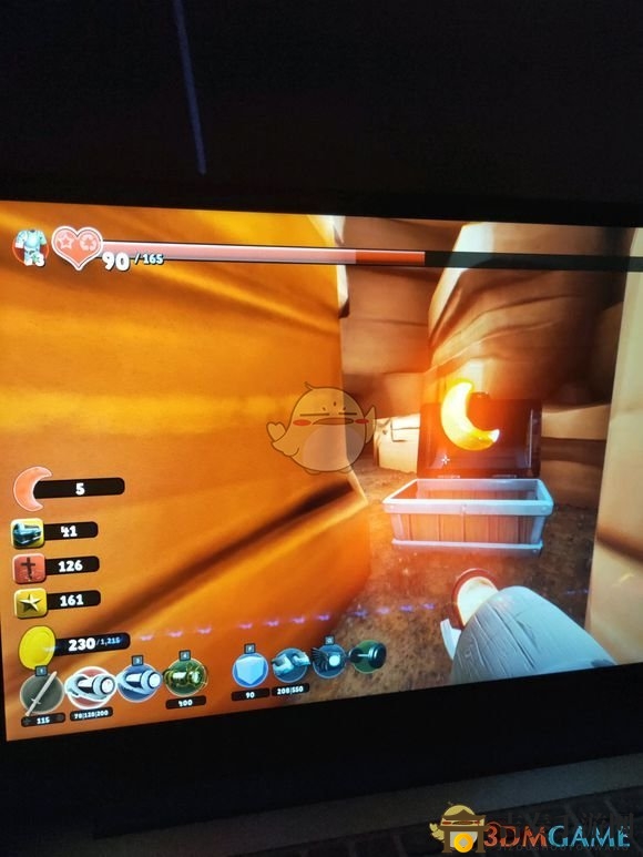 第五个红月宝箱位于钻三明星家出门向左,如图一所示,深沟对面有几个金币的地方(棒棒糖所指)。想要到达这里,理论上需要用身后发射的黄球给自己加速才能飞过去。然而,作者试了无数次都没成功,最终依靠拿到传送枪才得以抵达。相信还有许多其他方法可以实现这一壮举,欢迎分享。